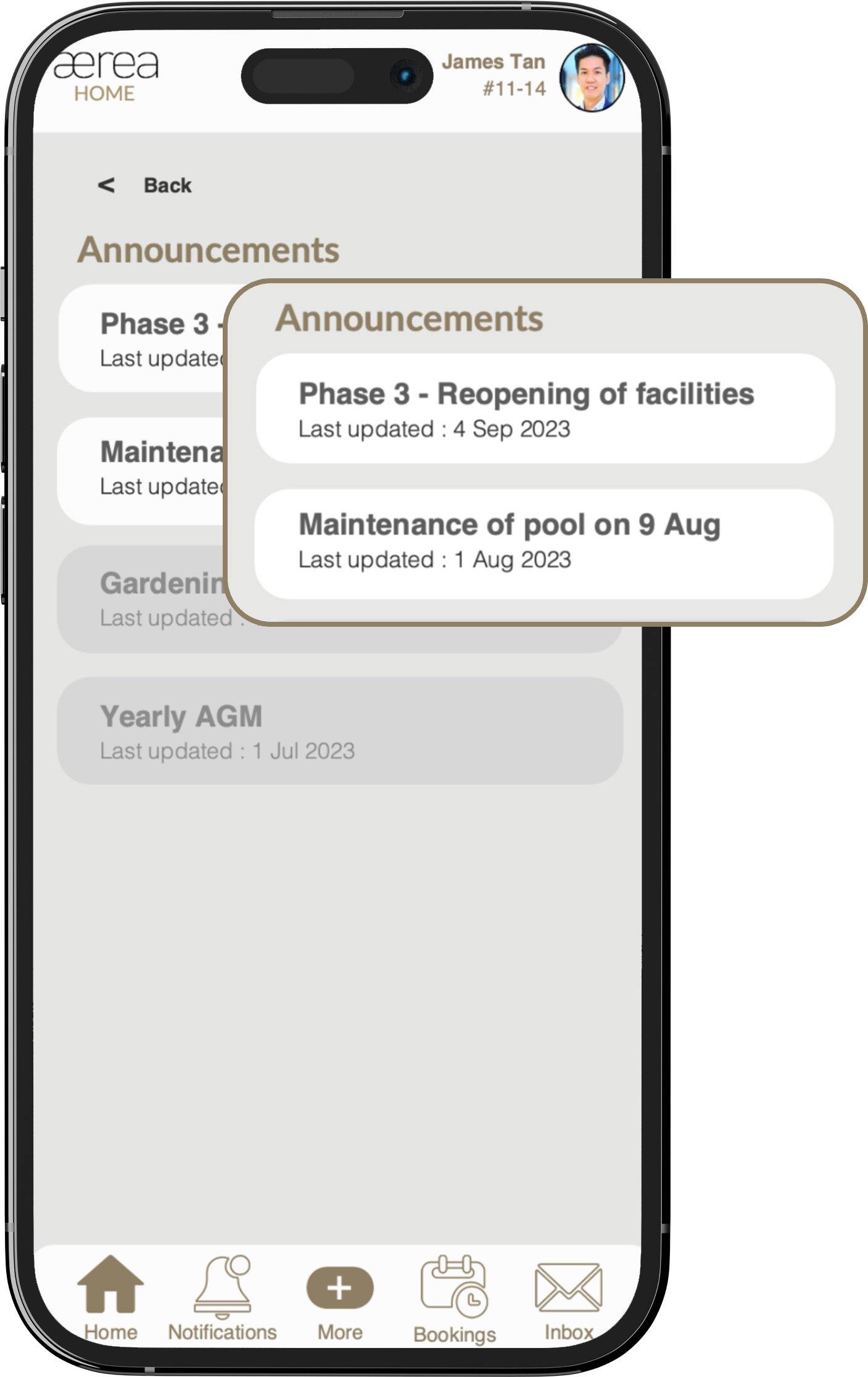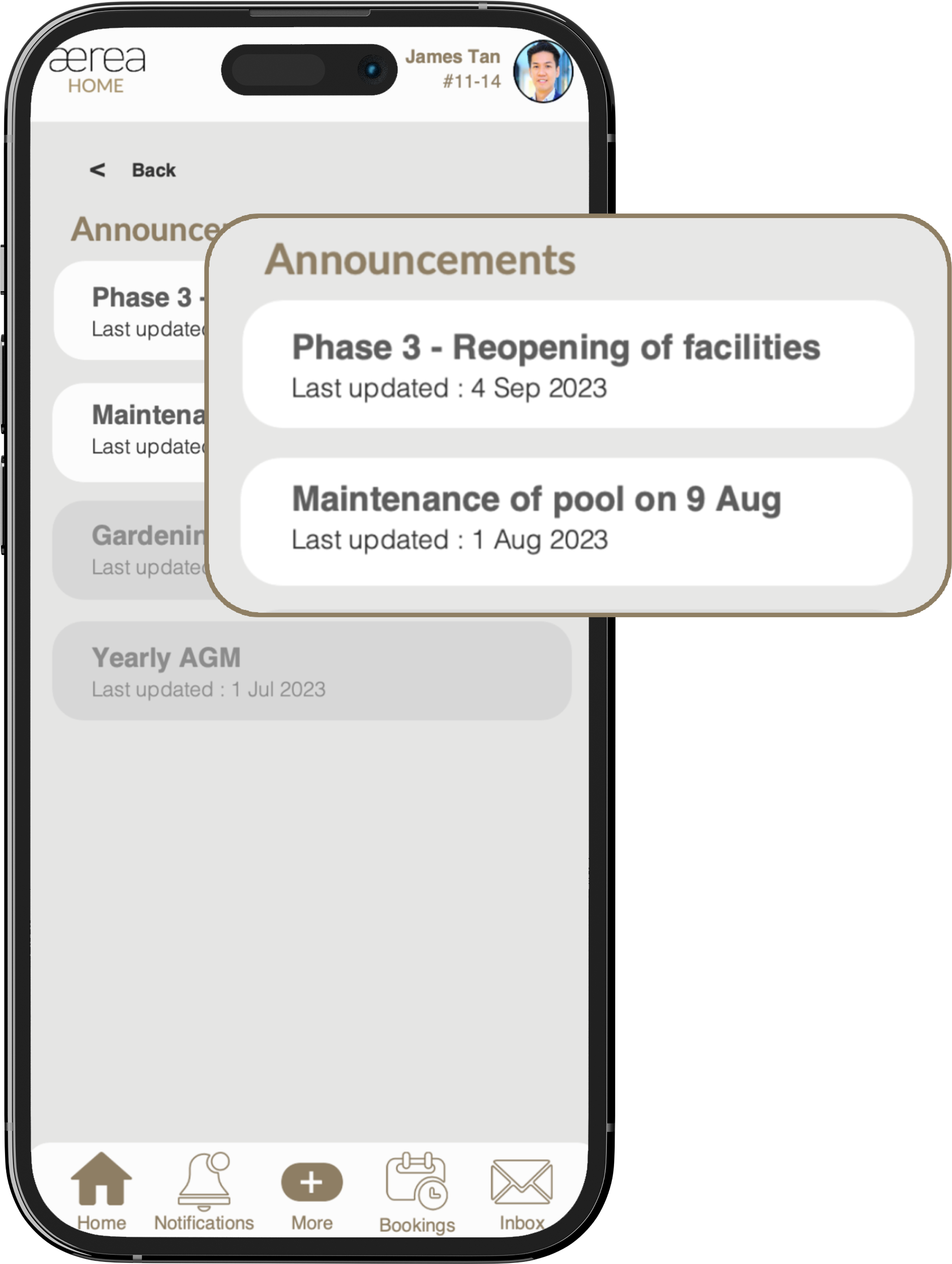 No more errors or missing payments. Your residents can pay invoices conveniently through the app via PAYNOW anytime! You can now effortlessly track payment status and identify outstanding payment and balances.